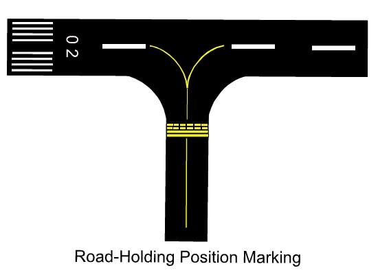 Marking Runway holding position markings on the taxiways designate the positions where the aircraft must pause when it has no clearance to proceed to the runway. Generally, the runway holding place markings also define the boundary of the runway’s protection area for aircraft leaving the runway.