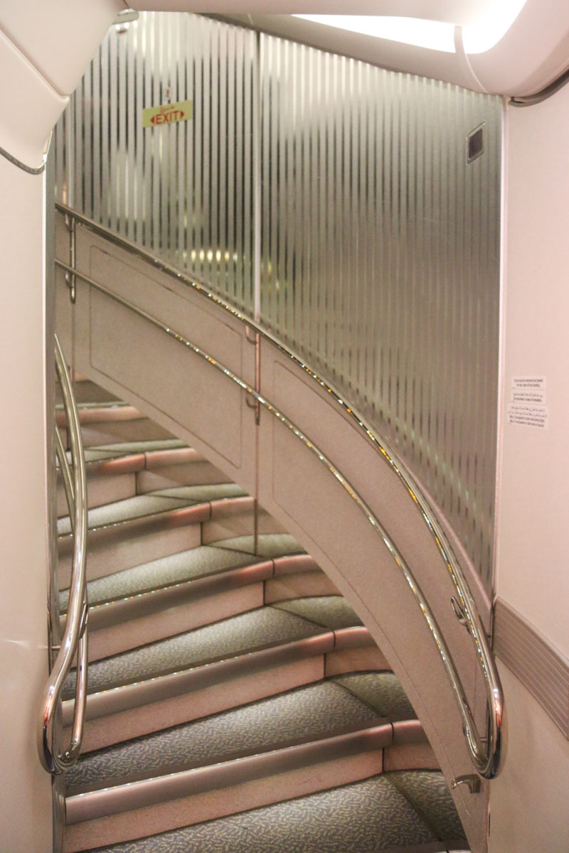Emirates’ first class cabin is available in the Airbus A380. The big dual-decker planes dedicate the entire lower floor to the seats of the economy, and those in the business, first board straight to the upper deck. There is a stair which connects the lower and upper deck.