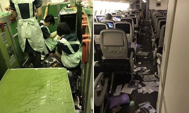 Eva Air flight number BR56 carried 178 passengers including four babies, and 21 crew members.The plane departed Taiwan Taoyuan International Airport at 8:18pm on November 22 local time and was hit by the turbulence at around 9:40pm.The plane was flying over Japan and the seat belt sign was switched on.The turbulence apparently caused chaos in the cabin. Pictures show passengers’ belongings and food in the galley thrown to the ground and flight attendants struggling to stand up.Eight flight attendants were left injured, according to a spokesperson from Eva Air.Two of them suffered sprained ankle and six of them had bruises. Three passengers were also said to suffer bruises.