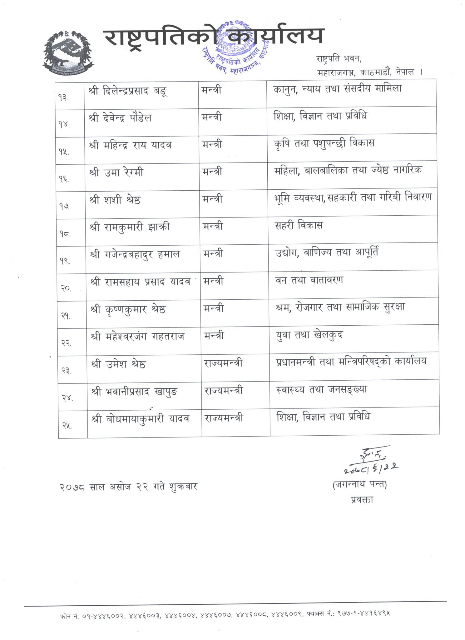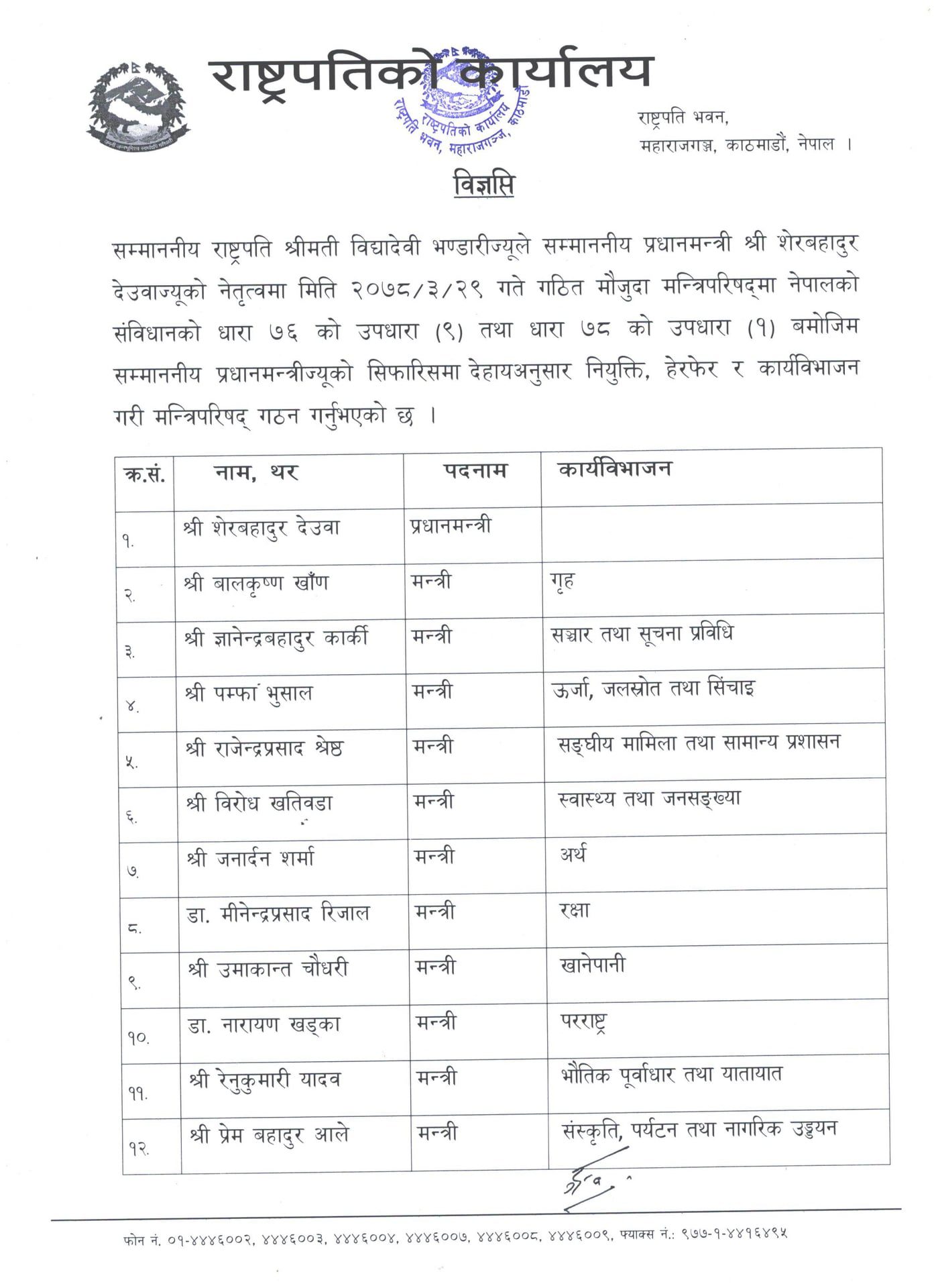 Deuba had earlier appointed only five ministers and one minister of state. The size of the cabinet has been increased to 25 by appointing additional ministers and ministers of state on Friday. He and his ruling coalition leaders were criticized for saying that the long-running cabinet failure affected the government’s performance. On the 88th day of the formation of the government under his leadership, Deuba expanded the Council of Ministers with a change of responsibilities.