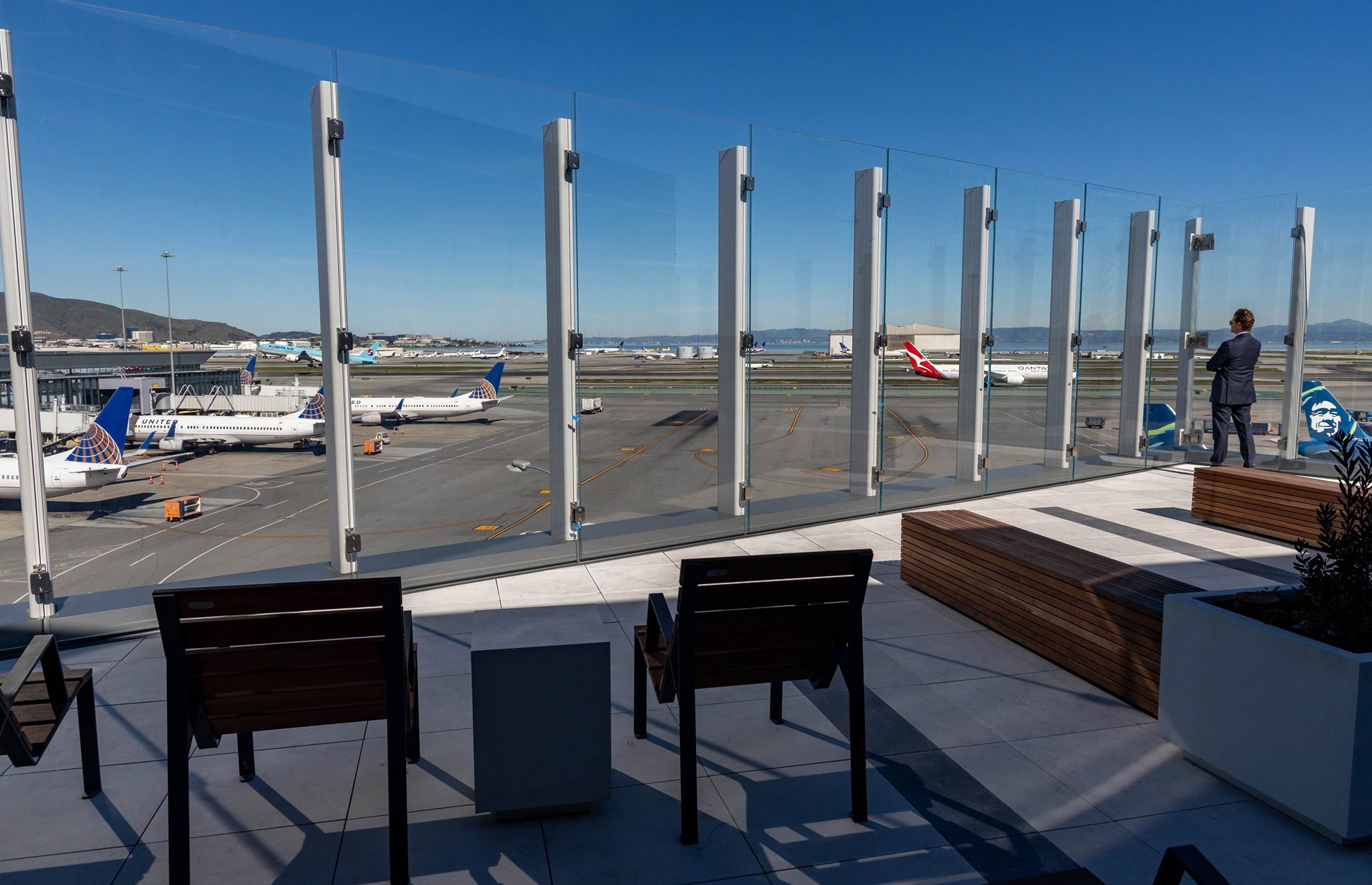 The SkyTerrace, situated in pre-security Terminal 2, available from 7 AM to 10 PM seven days a week.