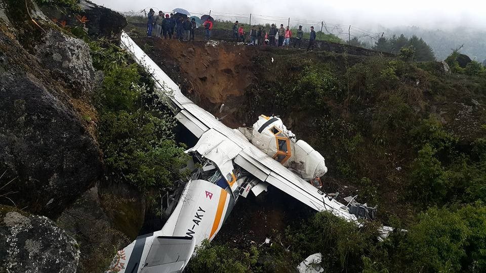 Since 15th October 1973 there had been more than 10 crashes till date causing more than 40 deaths and permanent damage of the airplane causing millions of losses. As per the CAAN report operating in marginal flight condition, terrain well ahead of the designated area on the runway, inaccurate wind information conveyed to flight crew, visual-illusion, high terrain immediately beyond the northern end of the runway and a steeply angled drop at the southern end of the runway into the valley below has been the main reason behind the crashes in the Lukla airport.